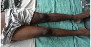 A 25 year old male patient presented with history of trauma 1 year back for which he did not take any medical treatment but massage and prolonged immobilization was done. The patient was on complete bed rest for three months. After three months the patient was walking with the help of a stick but was unable to squat and sit cross-legged. The activities of daily living were hampered and the patient was unable to carry on with his job.
