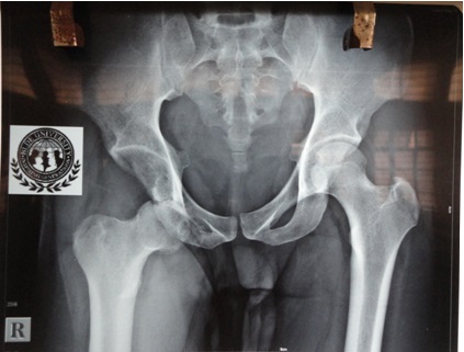 Figure 2: X-ray of pelvis with both hips showing inferior dislocation of right hip